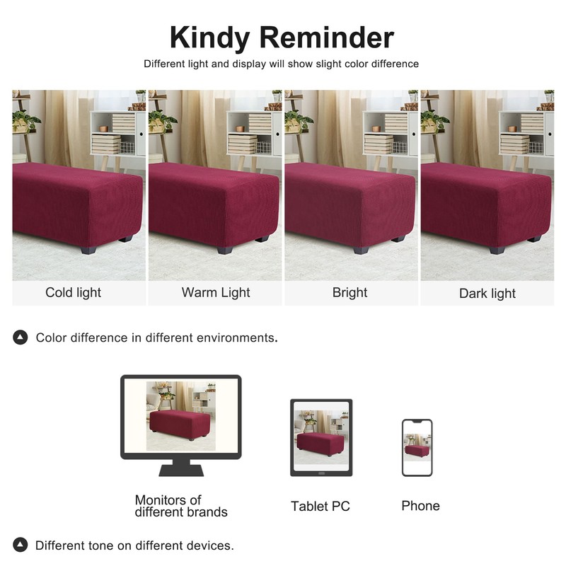 PiccoCasa High Stretch Ottoman Cover with Elastic Bottom, Soft Slipcover Jacquard Fabric Small Checks Rectangle Storage Stool Cover Furniture Covers Burgundy X-Large