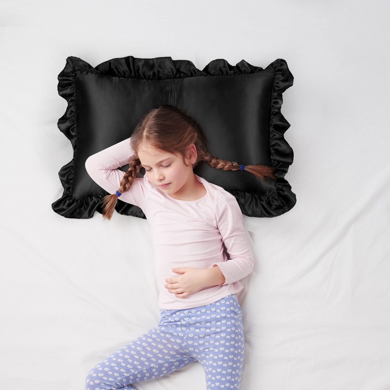 PiccoCasa Satin Pillowcase Set of 2 Pillowcases with Ruffles Cuddly Envelope Closure as Decorative Cushion Cover for Living Room Bedroom Sofa Decoration Black 40 x 60 cm