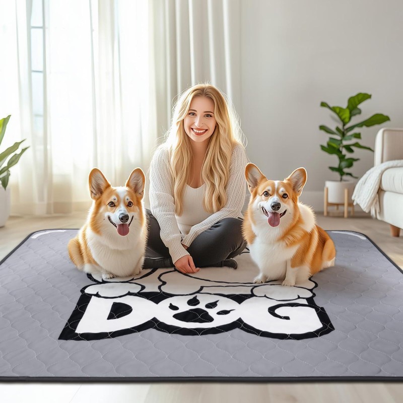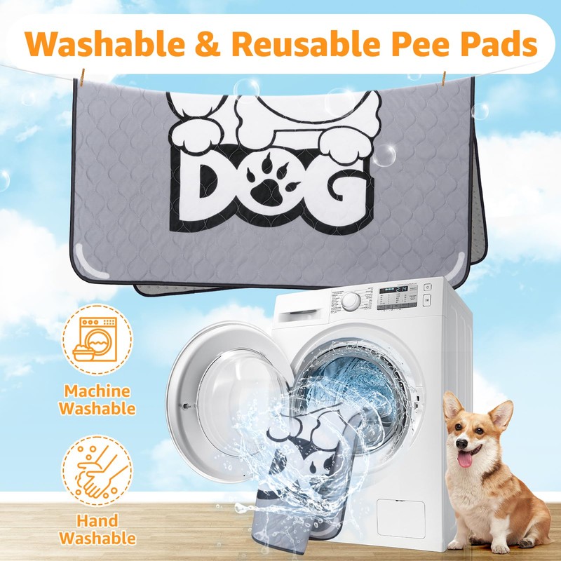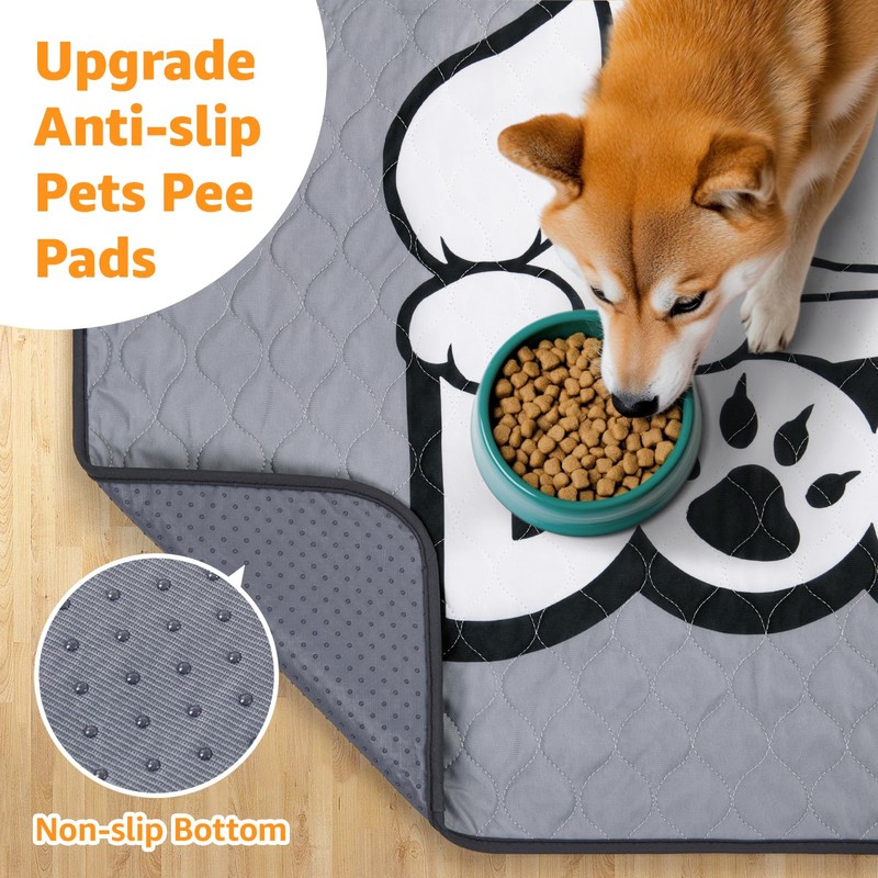 PICK FOR LIFE Washable Pee Pads for Dogs 2 Pack Washable Puppy Pads Absorbent Reusable Whelping Pads Non-Slip Dog Mat with Dog Print for Floor Protector Couch Potty Training, Grey 70x100cm