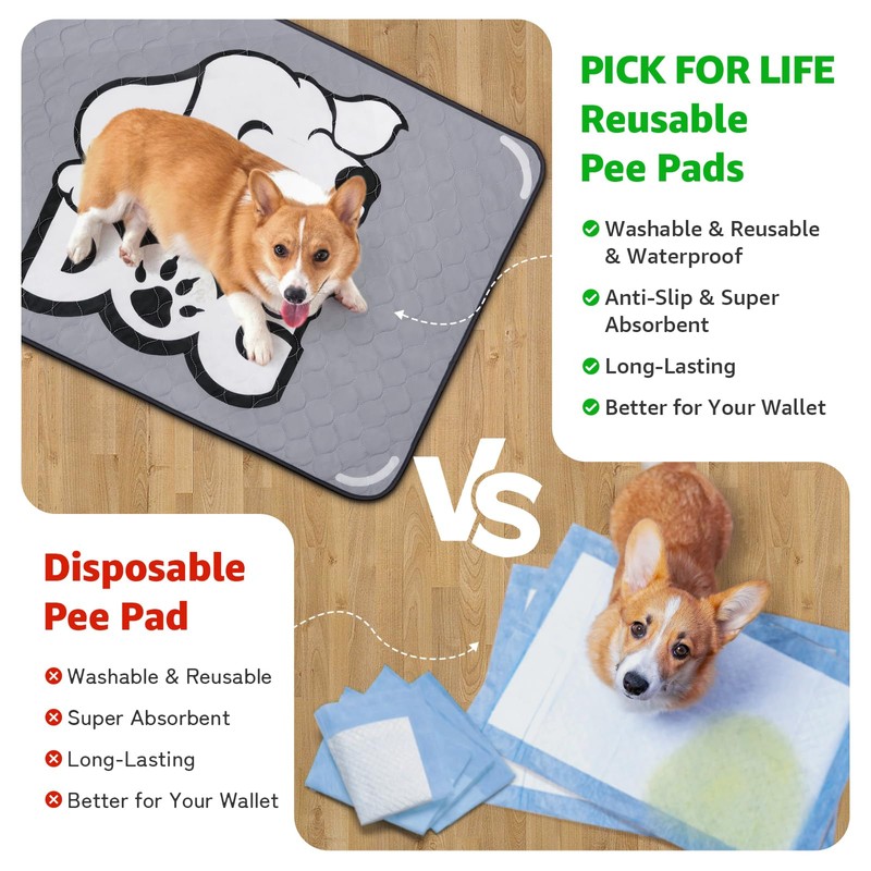 - Non-slip Bottom: PICK FOR LIFE reusable dog pads are designed with non-slip rubber grips backing, which helps maximizes the washable puppy pads stay on hardwood floor or carpet. Prevents your dog from slipping