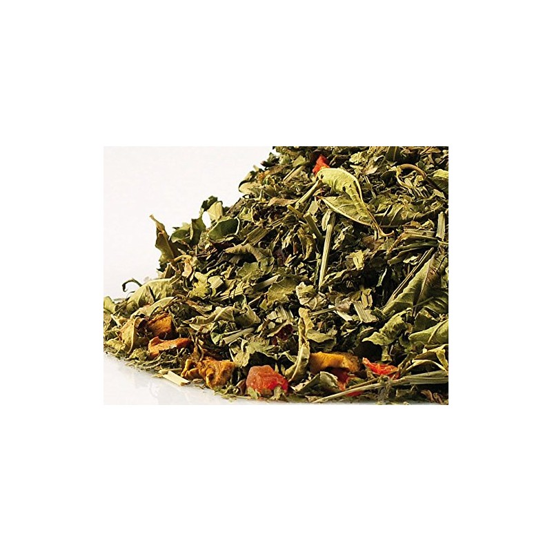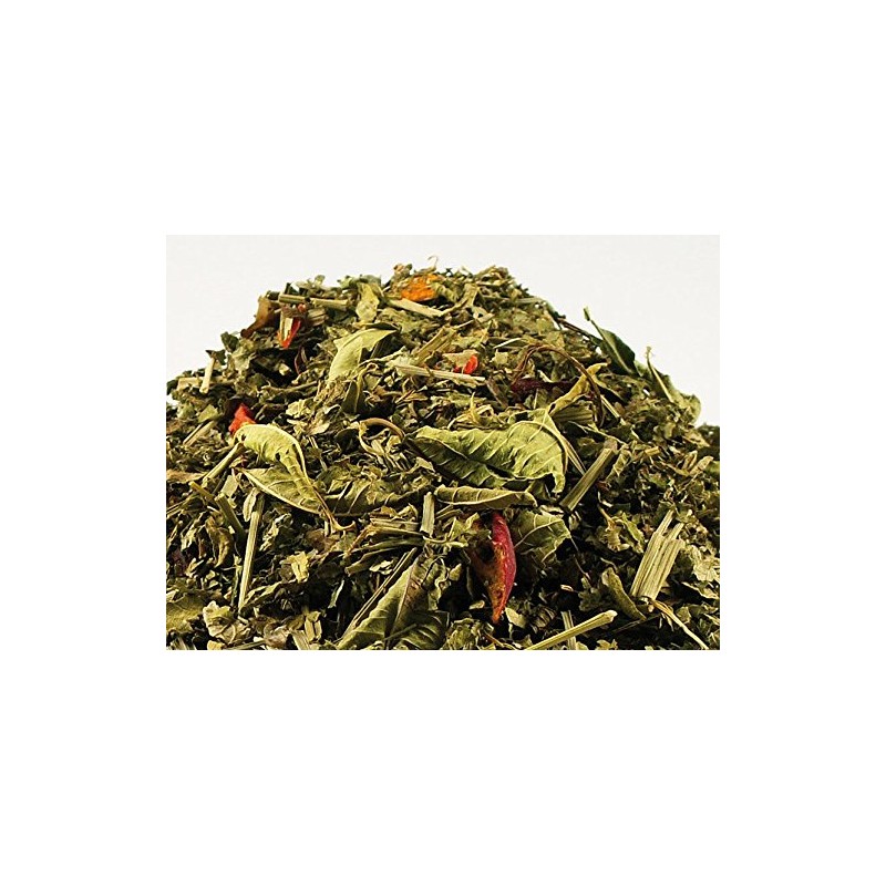 Enjoy this fruity citrus flavour! Composition of this mixture: blackberry leaves, lemongrass, apple pieces, verbena leaves (verbena), balm leaves, papaya pieces (papaya, sugar, additives: citric acid, calcium chloride), carrot flakes, orange peel, hibiscus flowers and natural aroma. Preparation recommendation: quantity: 20-25 g/l. Water temperature: 100 °C. Brewing time: 5-10 minutes