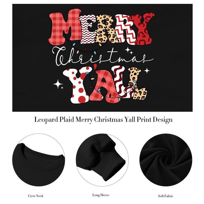 • Material: Our cute leopard plaid merry christmas yall letter print sweatshirt is made of polyester and spandex; skin-friendly; soft and comfortable; make you stay comfy while looking pretty and fashion