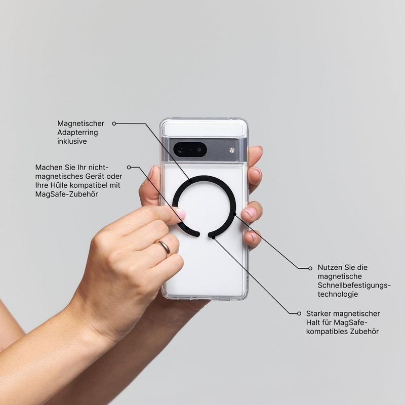• Adapterring inklusive. Mach jede Handyhülle MagSafe-kompatibel, indem du den Adapterring anbringst. Eine Handyhülle ist erforderlich, aber nicht im Lieferumfang enthalten, um das Wallet zu verwenden.