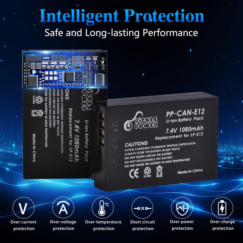- 【Quality & Safety Guarantee 】LP-E12 LP E12 battery and charger set are CE certified, tested by manufacturer to match OEM standard.built with multiple circuit protection (over-charging, short-circuit, high-temperature, and surge protection) with a high-quality, fire-resistant construction