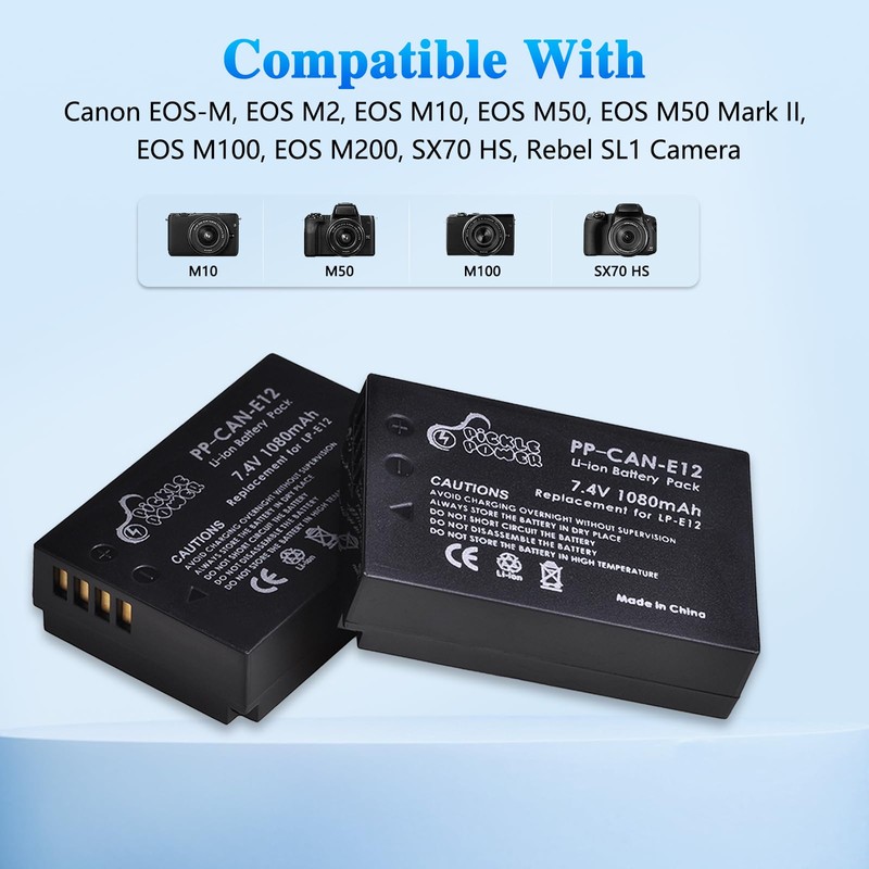 - 【Wide Compatibility】LP-E12 battery compatible with EOS M, EOS M2, EOS M10, EOS M50, EOS M50 Mark II, EOS M100, EOS M200, SX70 HS, Rebel SL1 Digital Cameras