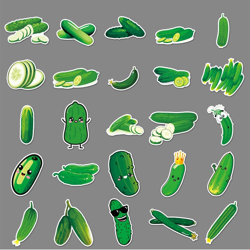 Pickle Stickers 50 Pcs Vinyl Cartoon Cucumber Sticker for Water Bottle Laptop Skateboard Luggage Bike Car Phone Bumper, Waterproof Cute Vegetable Decals for Teens Kids