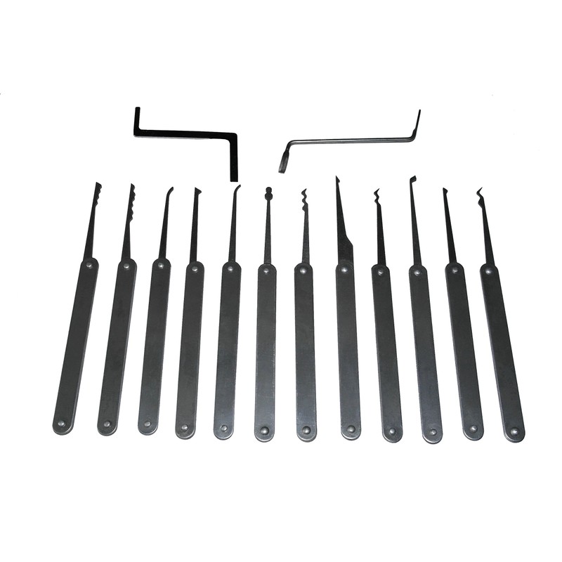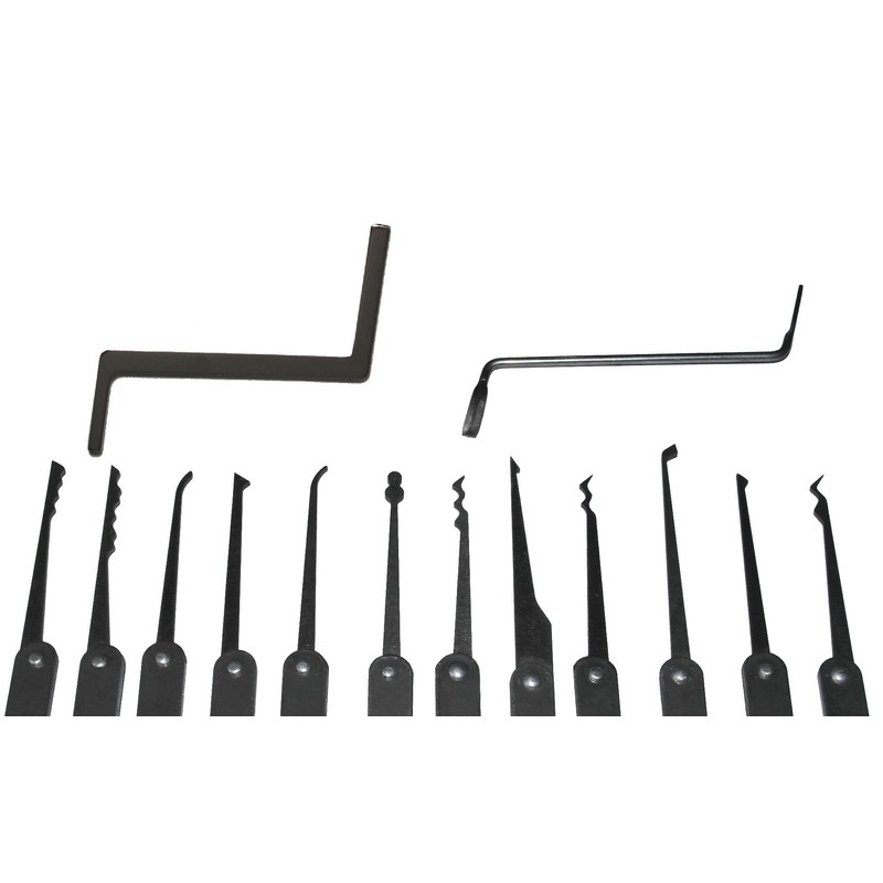 - Contains the most important picks for cylinder pin setting and racking (e.g., half-diamond and snake)