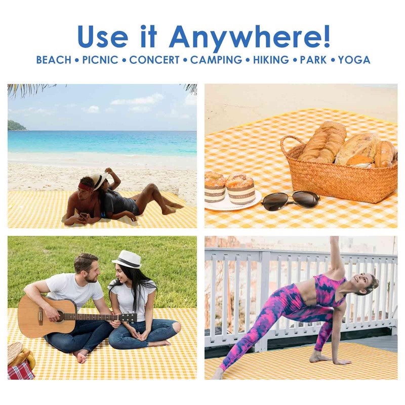 Picnic Beach Blanket Extra Large, XL Sandproof Waterproof Outdoor Camping Blankets 80x60in, Sand Free Oversized Mat, Quick Drying Portable Mats for Travel, Hiking, Music Festival, Lawn-Yellow