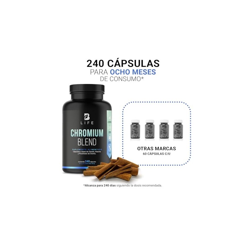 Picolinato de Cromo de 240 Cpsulas Con Canela y Niacina. Ingredientes naturales. Chromium Blend B Life.