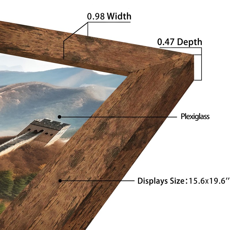 • 【 ECO-FRIENDLY MATERIAL】: The 16x20 frame is made of high-quality MDF wood, finished with flat brown accents, plexiglass, smooth rigid backing, and attached stamped hanging hardware.