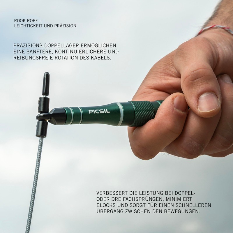 Discover the Rook Rope from PICSIL, the ideal skipping rope for anyone looking for quality, performance and versatility. Perfect for cross training, boxing and functional training, the design with aluminium handle, steel-coated PVC rope and double bearings guarantees fluid rotation, resistance and lightness. Suitable for all levels, from beginners to experts, and for all target groups: women, men and children. The ergonomic design provides a comfortable grip, even during the most intense workouts. Adjustable, durable and with a professional finish, it is the perfect skipping rope for your training set. Choose quality with PICSIL and take your routine to the next level.