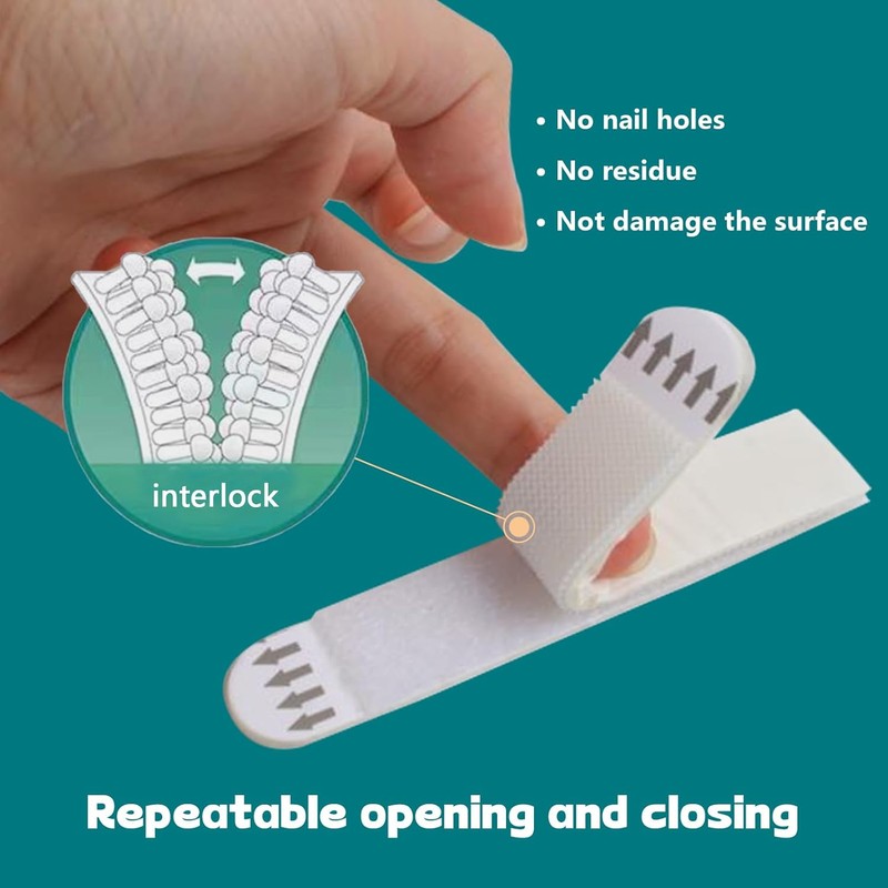 Easy To Clean Removal -- to remove the universal hook and loop strips, simply hold the top of the removable adhesive strips and slowly pull straight down towards the floor to remove, there will be no residue on the flat surface, whether you're hanging lightweight or heavier objects, our strips can handle the job.
