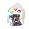 - Charming Rottweiler Greeting Card: This 5x7” card features a beautifully printed Rottweiler with vivid rainbow paw prints. It’s a heartfelt design that dog lovers will adore, whether for birthdays or simple notes.