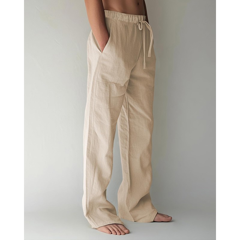 PIDOGYM Men's Linen Pants Beach Casual Cotton Summer Lightweight Elastic Waist Drawstring with Deep Pockets