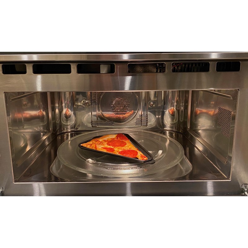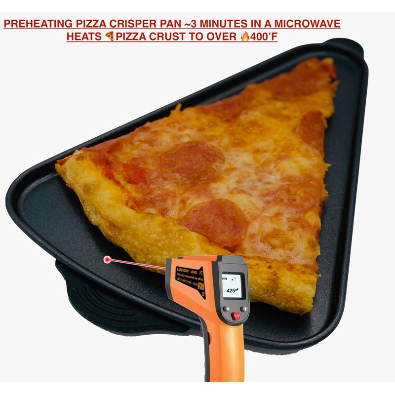 The Original PIE-POD Crisper Pan. Made from aluminized steel alloy, the crisper pan can achieve temperatures of over 450° in a microwave, providing a skillet like affect to the reheating of your pizza. Slice using a microwave oven. The nonstick coating makes for easy cleanup. Your leftover pizza slices, when heated in the microwave, will taste like they came right out of a brick oven.