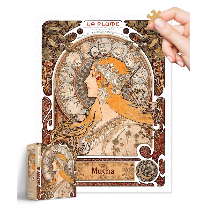 PieceRelax Plastic Jigsaw Puzzles for Adults 1200 Pieces - Alphonse Mucha - Zodiac Most Satisfying Table Games and Gifts No Puzzle Mat Required [H3638]