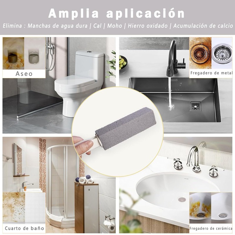 - 【Potente cepillo de limpieza】 Humedezca la piedra pómez gris antes de usarla, puede limpiar de manera eficiente y rápida inodoros, cocinas, azulejos de piscinas, parrillas, accesorios de cerámica, accesorios de lavandería y utensilios metálicos, perfecto para limpiar los depósitos de cal más rebeldes y las manchas de agua dura. , depósitos de calcio, hierro y óxido.