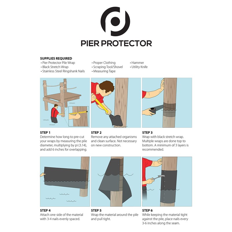 Pier Protector – Pile Wrap for Docks & Piers - 48 inch (50 feet)