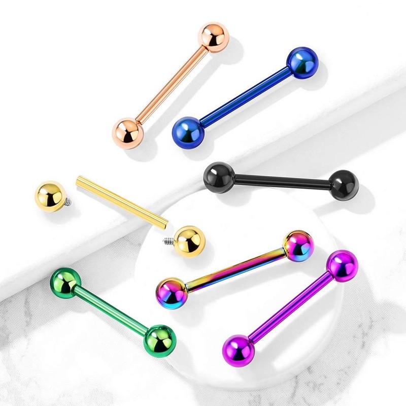 Pierced Owl - 14G G23 Implant Grade Solid Titanium PVD Plated Internally Threaded Nipple Barbells, Sold as a Pair, Titanium, no gemstone