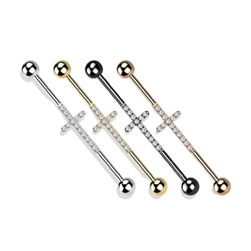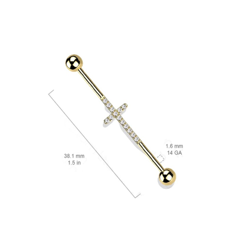 - STYLE: CNC Set Lined CZ Cross Industrial Cartilage Barbell