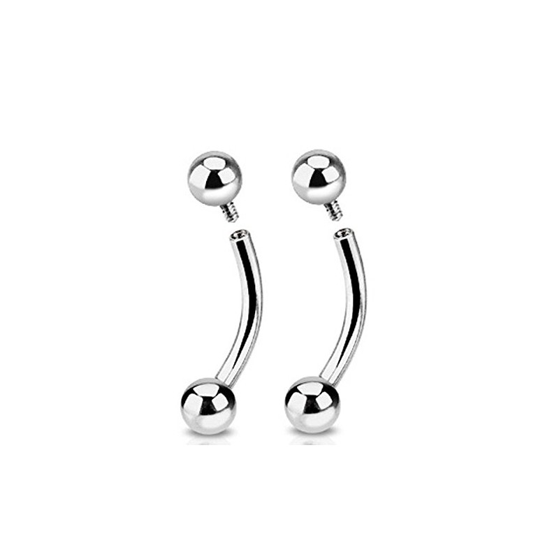 Pierced Owl - 16GA 316L Stainless Steel Single Side Internally Threaded Curved Barbells, Sold as a Pair, Metal, no gemstone
