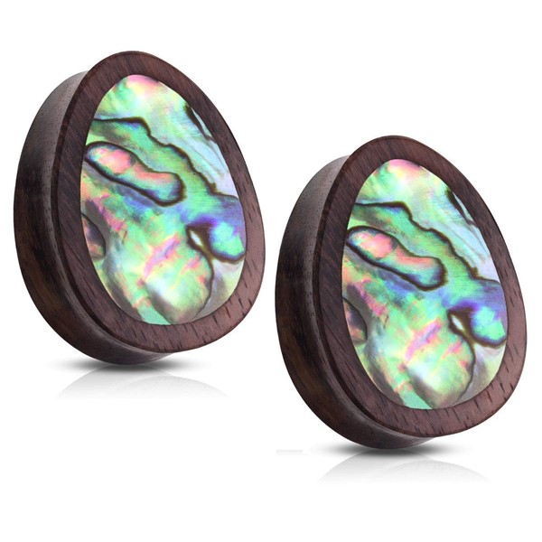 Pierced Owl Abalone Inlaid Sono Wood Tear Drop Saddle Plugs, Sold as a Pair (25mm (1"))