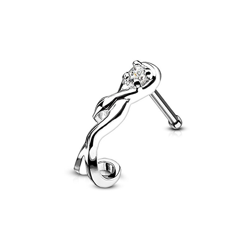 PiercedOff 316L Surgical Steel Nose Bone Crawler Stud with Snake Wrapped Around CZ Gem - Thickness 20GA (0.8mm) / Length 6mm / Snake Size 13mm