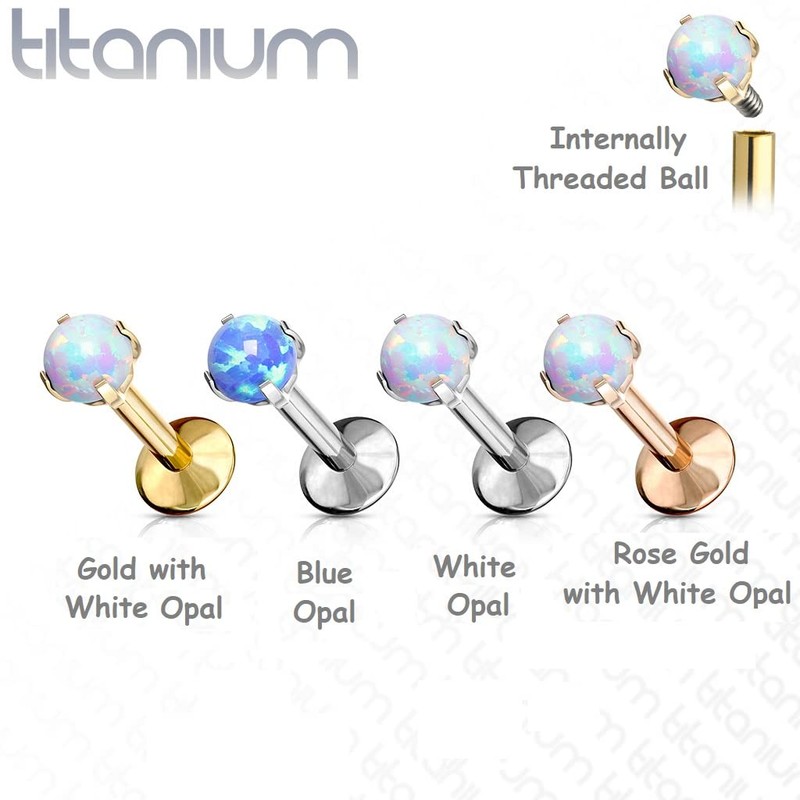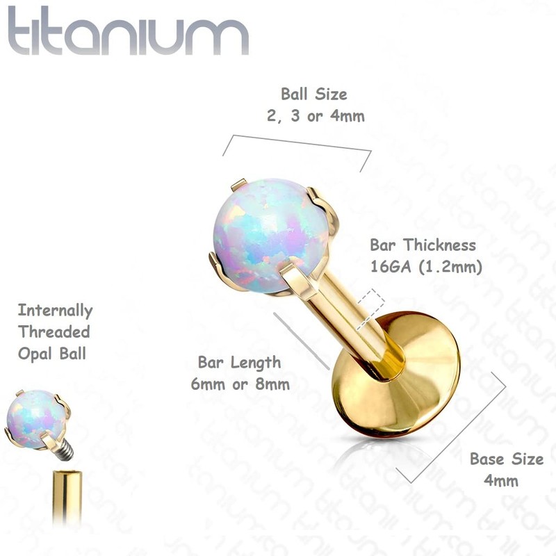 PiercedOff Titanium Rose Gold Tone Labret with Internally Threaded White Synthetic Opal Ball (Thickness 16GA (1.2mm) / Length 6mm / Ball Size 3mm)
