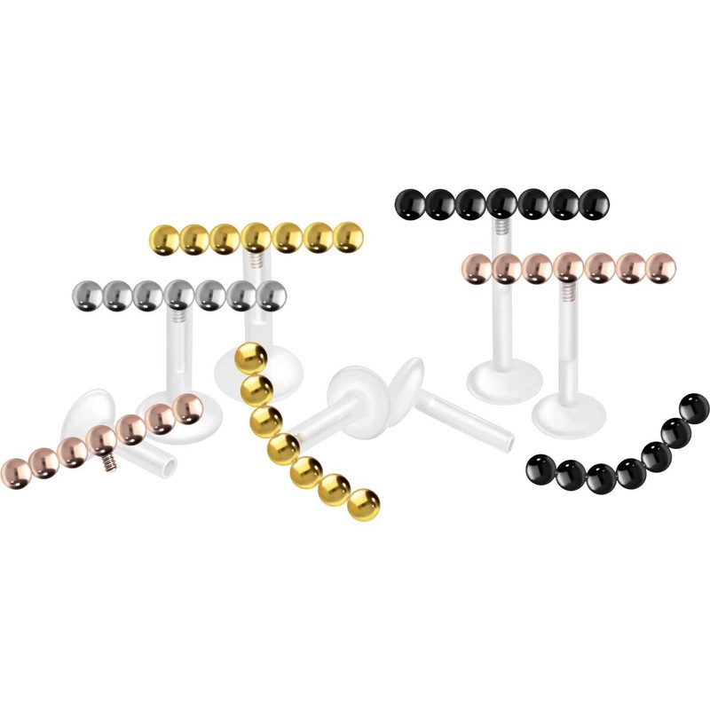 PIERCINGLINE PTFE Labret with Internal Thread Titanium Attachment 7 Balls Piercing Lip Nose Ear Helix Tragus Medusa Choice of Colours and Sizes, Titanium PTFE Titanium