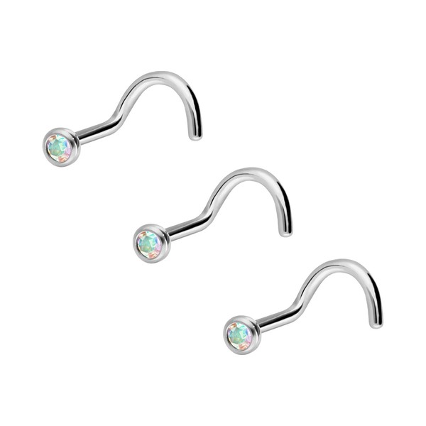 PIERCINGLINE Set of 3 Titanium Nose Piercing Spiral 2 mm Crystal Nostril Piercing Nose Stud, Titanium