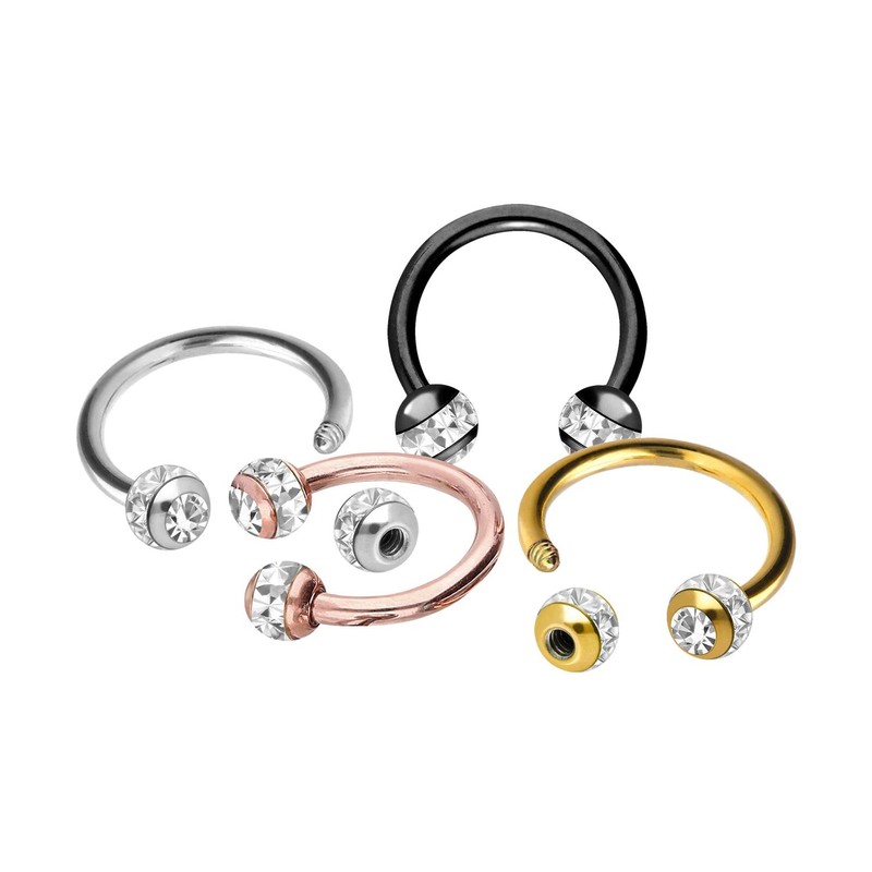 Piercingline Surgical Steel Horseshoe Ring with 2 Epoxy Balls + Crystals Pier...