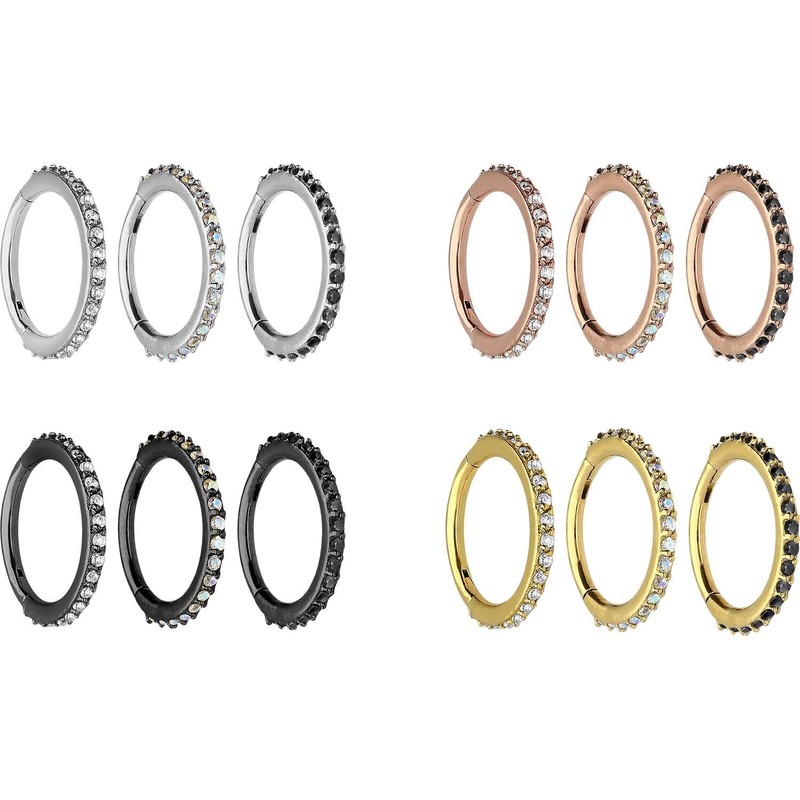 Piercingline Surgical Steel Segment Ring Clicker Crystal Piercing Septum Trag...