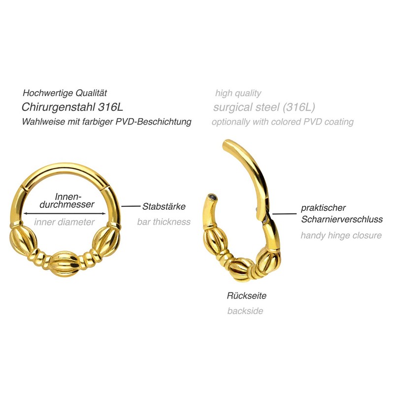 - Use: e.g. as septum piercing, nose piercing, ear piercing, etc