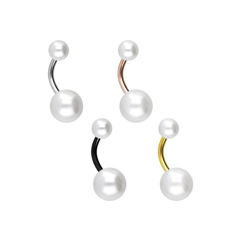 PIERCINGLINE Titanium banana bell with internal thread, synthetic pearls, belly button piercing, belly piercing, choice of colours, Titanium