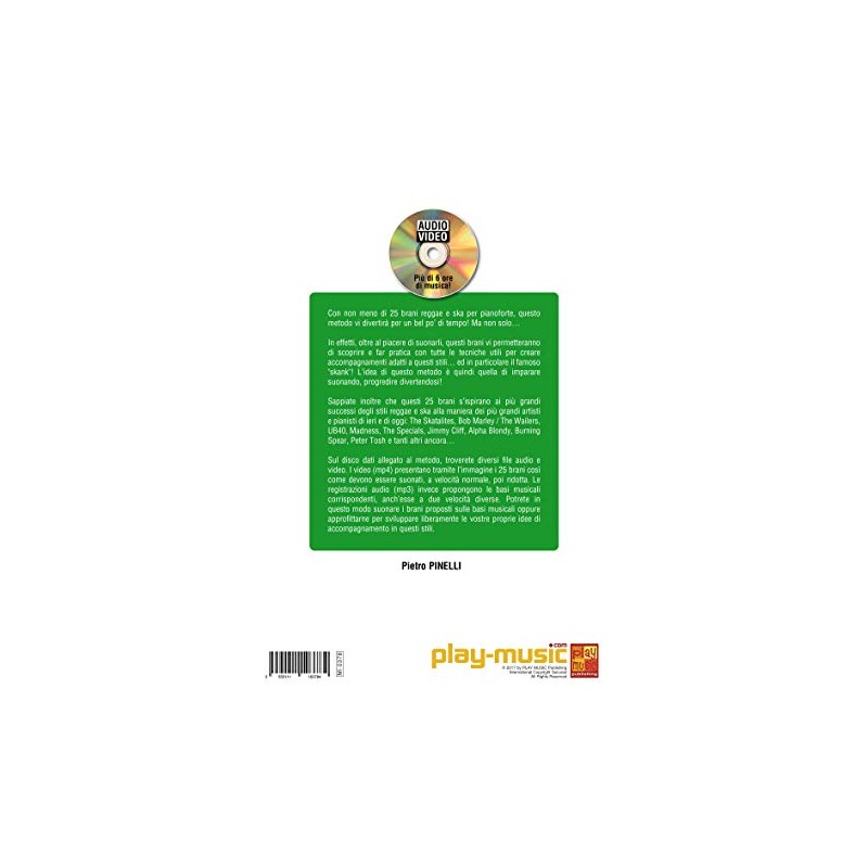 'Con Non Meno Di 25 brani Reggae E Ska per pianoforte, this metodo VI Divertirà For A Bel po di tempo. Ma Non solo... in effetti, oltre al piacere di suonarli, questi brani VI permetteranno di scoprire e far pratica con tutte le tecniche utili per creare accompagnamenti adatti a questi stili...