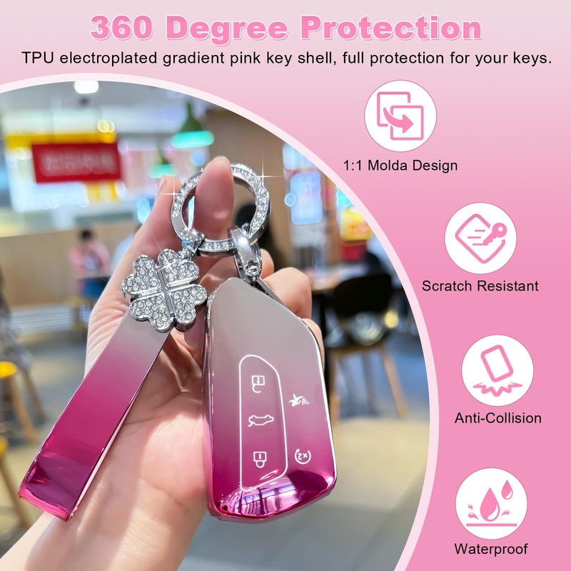 - Unique Anti-Lost Keychain: The D-shaped ring with a cross lock is more secure and locks tighter compared to the traditional spiral type, preventing keys from falling off or getting lost. PIFOOG's gradient pink key fob case for VW ID.4 Atlas Golf GTI R adopts a fully enclosed design, which effectively prevents your key from being scratched, damaged, or wet.