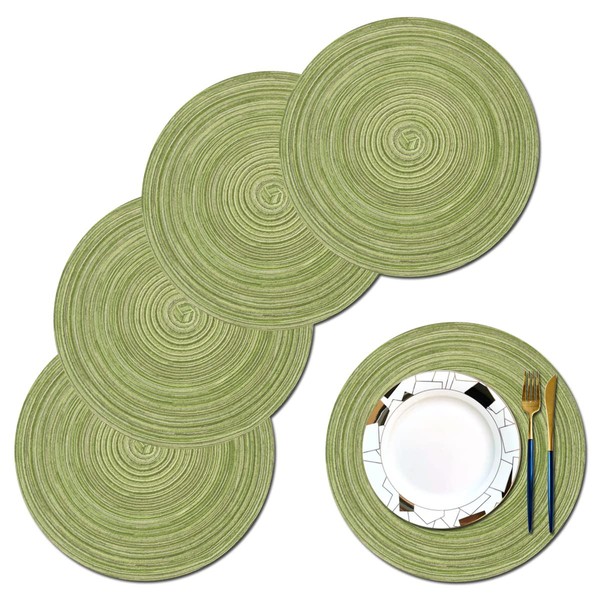 PIGCHCY Round Braided Placemats Washable Easy to Clean Round Placemats Set of 4 Table Mats for Dining Tables 15 inch (Green)