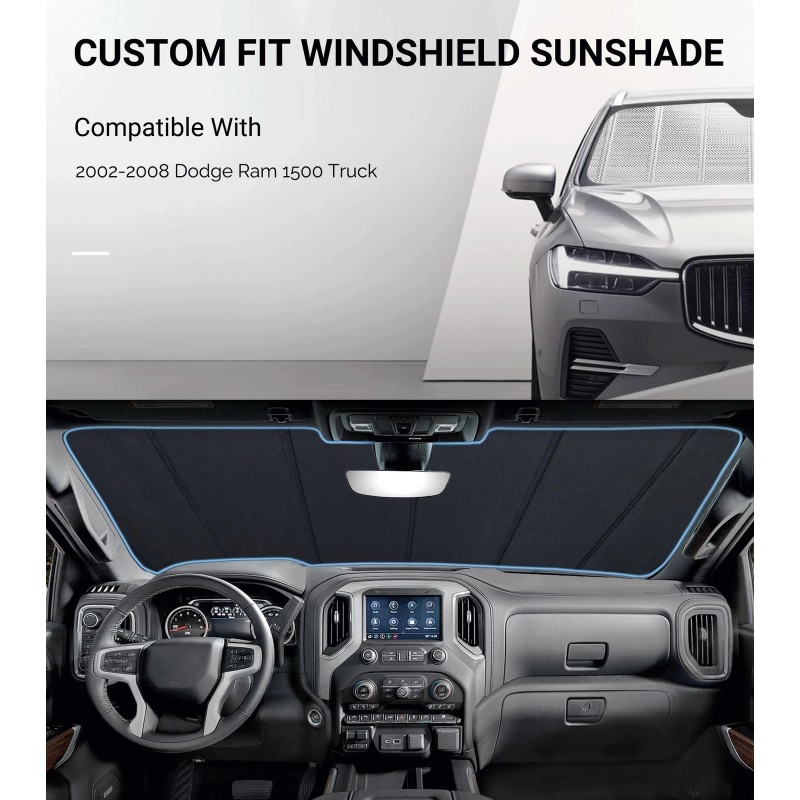 Windshield Sun Shade for 2002-2008 Dodge Ram 1500 Truck. Front Window Sunshade with Storage Bag