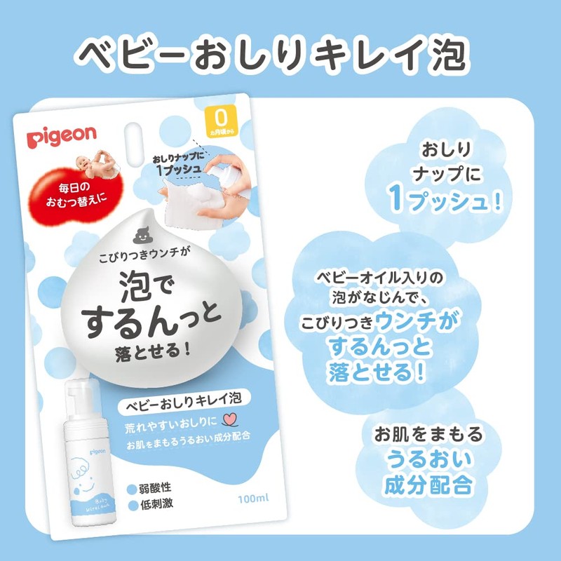 Pigeon Weak Acidity, Hypoallergenic, Baby Butt Clean Foam, 3.4 fl oz (100 ml), White