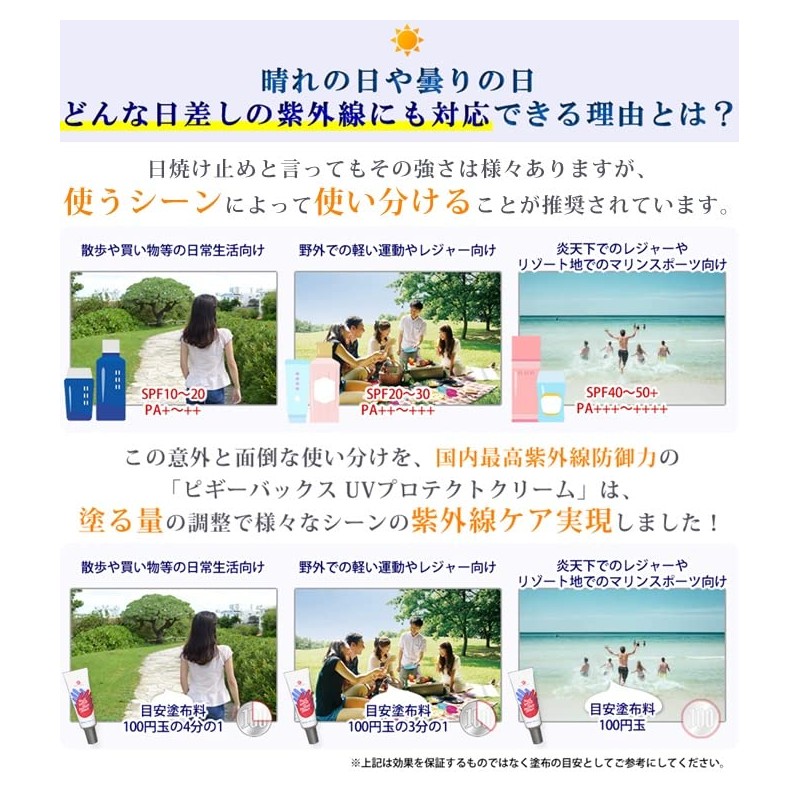 Piggybucks UV Protective Cream SPF 50+, PA+++++: Provides a non-chemical protection that is the best in Japan, but does not require re-painting.