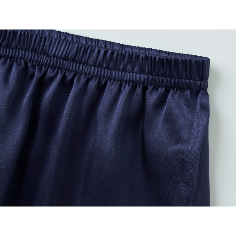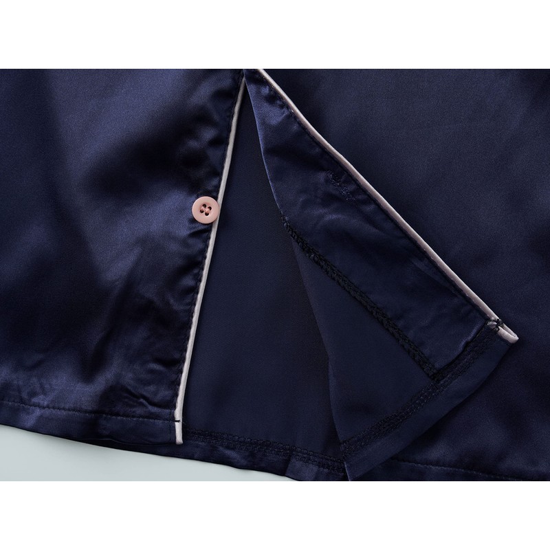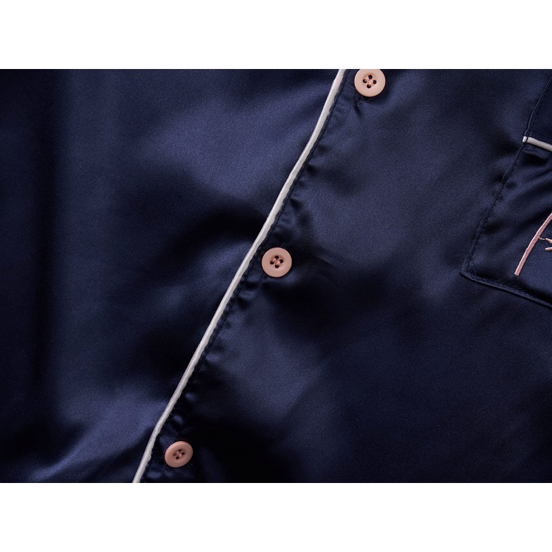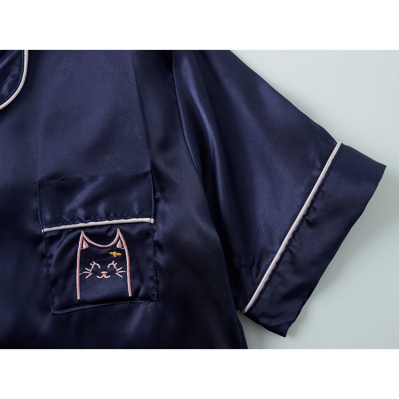 - *Características: estos cómodos y suaves pijamas de seda cuentan con un bonito gato bordado en color azul marino, cuello con muescas, un bolsillo frontal en camisa de dormir y mangas cortas. Banda elástica en la cintura viene en los pantalones cortos midi a juego. Estos pijamas son el regalo perfecto para una fiesta secreta de Papá Noel, alguien especial, cumpleaños o Navidad.