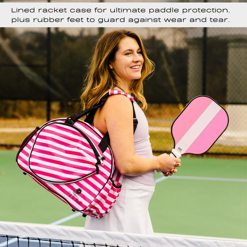 Pik’le’Ball Women's Pickleball Sport Tote Bag - Stylish, Durable Design with Paddle Pocket, Checkered Chic Tan