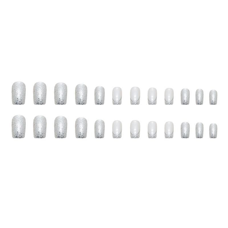 Pikabows Press On Nails Medium Square Fake Nails Acrylic French Tip White Silver Glitter Glossry Sequins False Nail Tips Kit Glue on Nails for Women
