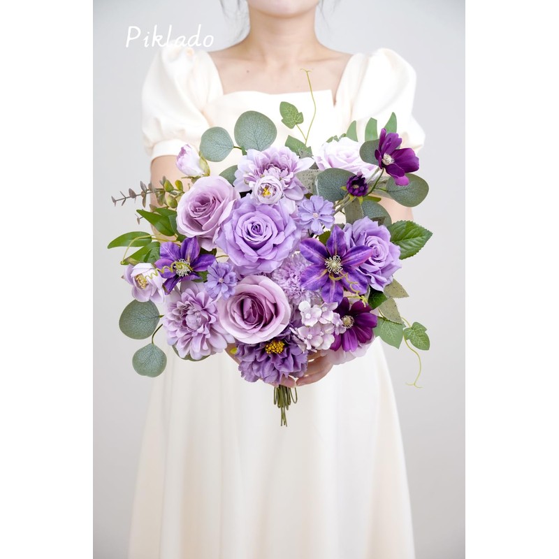 Piklado Artificial Flower Combination Box Set Artificial Flower Loose Leaves and Stems DIY Wedding Center Bouquet Bride Wedding Baby Shower(Lavender & Dark Purple)