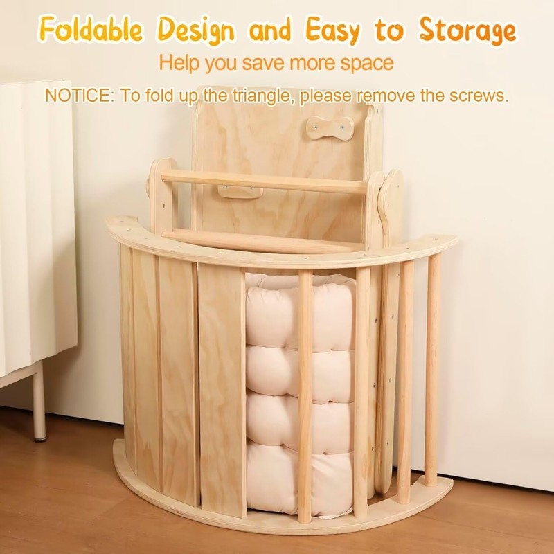 Yopnoyik Pikler Triangle Set with Cushion, 7 in 1 Toddler Climbing Toys Indoor, Montessori Foldable Climbing Set, Wooden Climbing Toys for Toddlers Inside with Ramp, Arch and Ladder (Nature Wood)