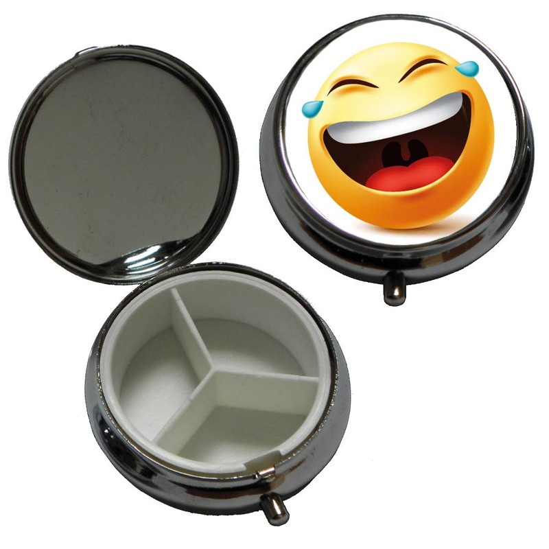 - Made of sturdy metal construction with plastic inner dividers. A classy chrome-plated pill box storage with a high gloss image and a reliable spring lock that keeps your medication safe inside.