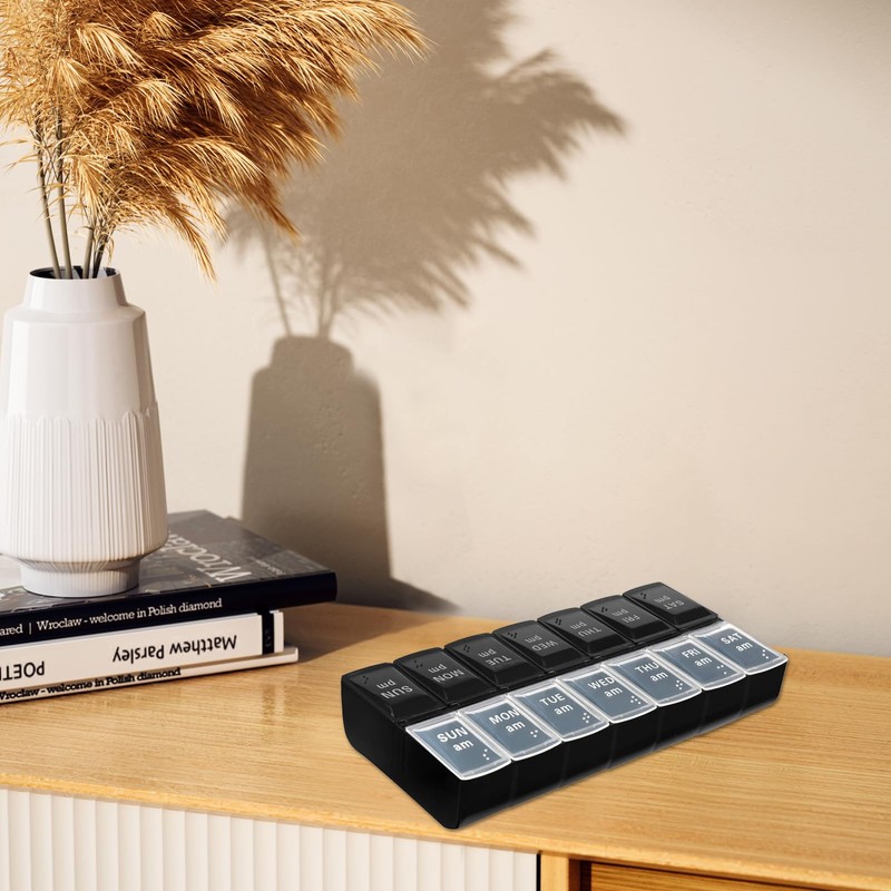 ★With a lightweight design, small and easy to carry, tablet dispenser 7 day 2 times a day can be easily put into a handbag or backpack.