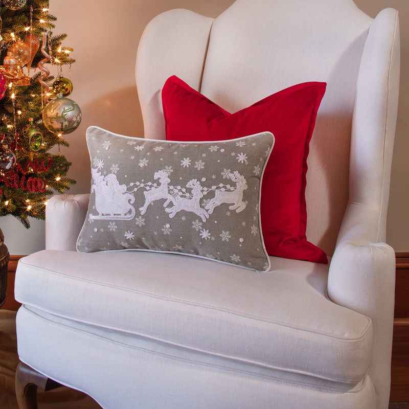 Pillow Perfect Indoor Santa Sleigh & Reindeers Lumbar Pillow, 13" x 19", 12" x 18", Grey