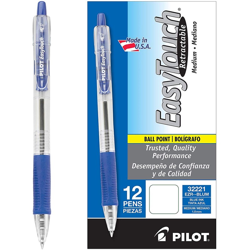 PILOT EasyTouch Refillable & Retractable Ballpoint Pens, Medium Point, Blue Ink, 12-Pack (32221) 1
