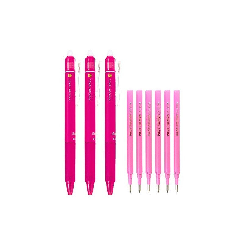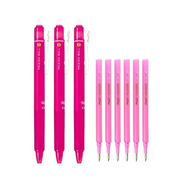 Pilot FriXion Ball Knock Retractable Erasable Gel Ink Pens, Extra Fine Point 0.5mm, Pink Ink, 3 Pens & 6 Refills Value Set